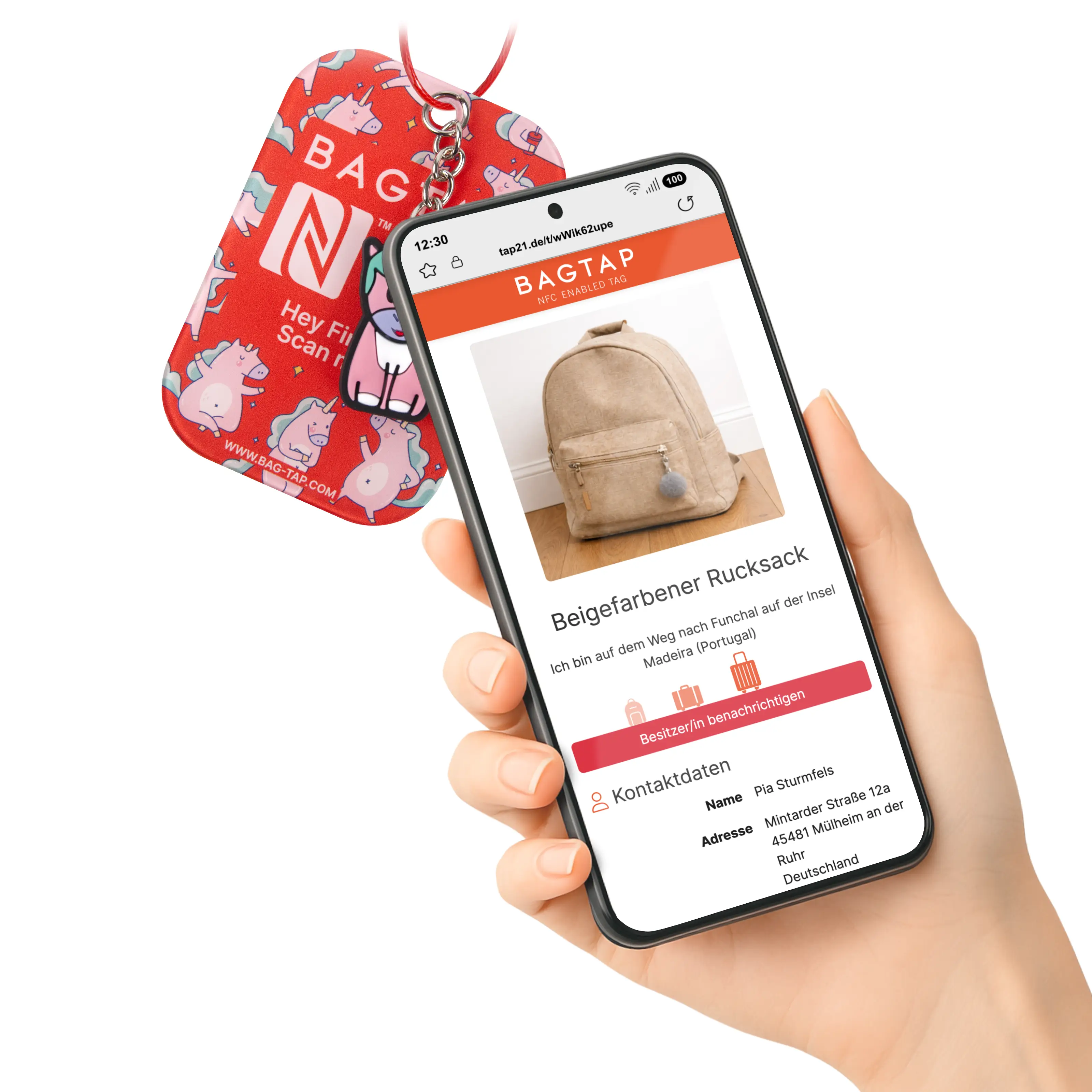Um Daten zu hinterlegen oder zu aktualisieren, scannen die Eltern den Bagtap einfach kurz mit dem Smartphone und loggen sich in unser Tap21-Webportal ein. Weitere Informationen sowie detaillierte Bagtap-Anleitungen und FAQs finden sie auf der Bagtap-Webseite.