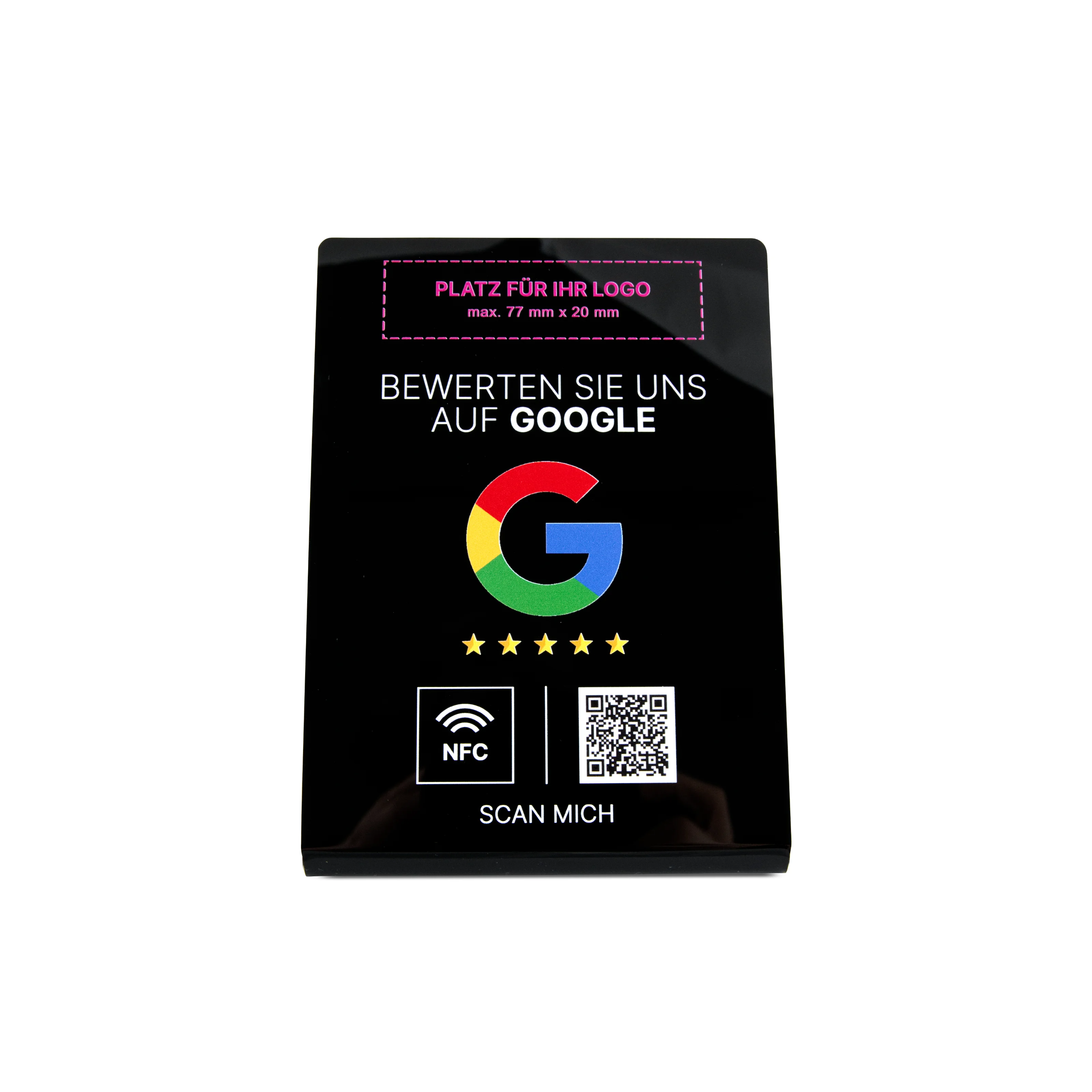Google Bewertung NFC Aufsteller Logodruck oben - Acryl - 110 x 150 mm - schwarz glänzend