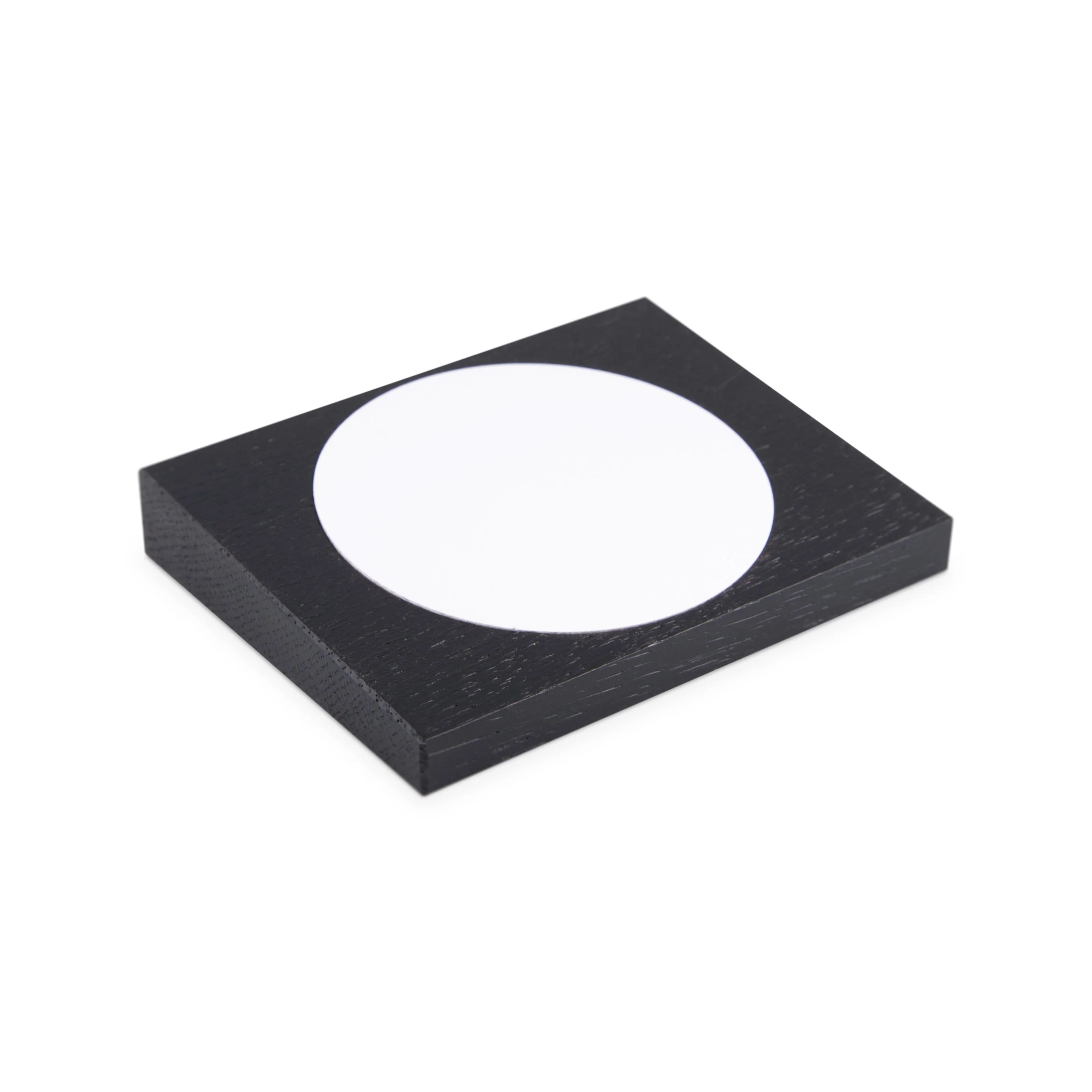 Der schwarze Kartenhalter aus Holz ist für die stilvolle Präsentation von NFC Stickern oder Schildern mit einem Durchmesser von 75 mm konzipiert und eignet sich ideal für Schreibtische und Theken, z. B. an Rezeptionen oder in Wartebereichen.