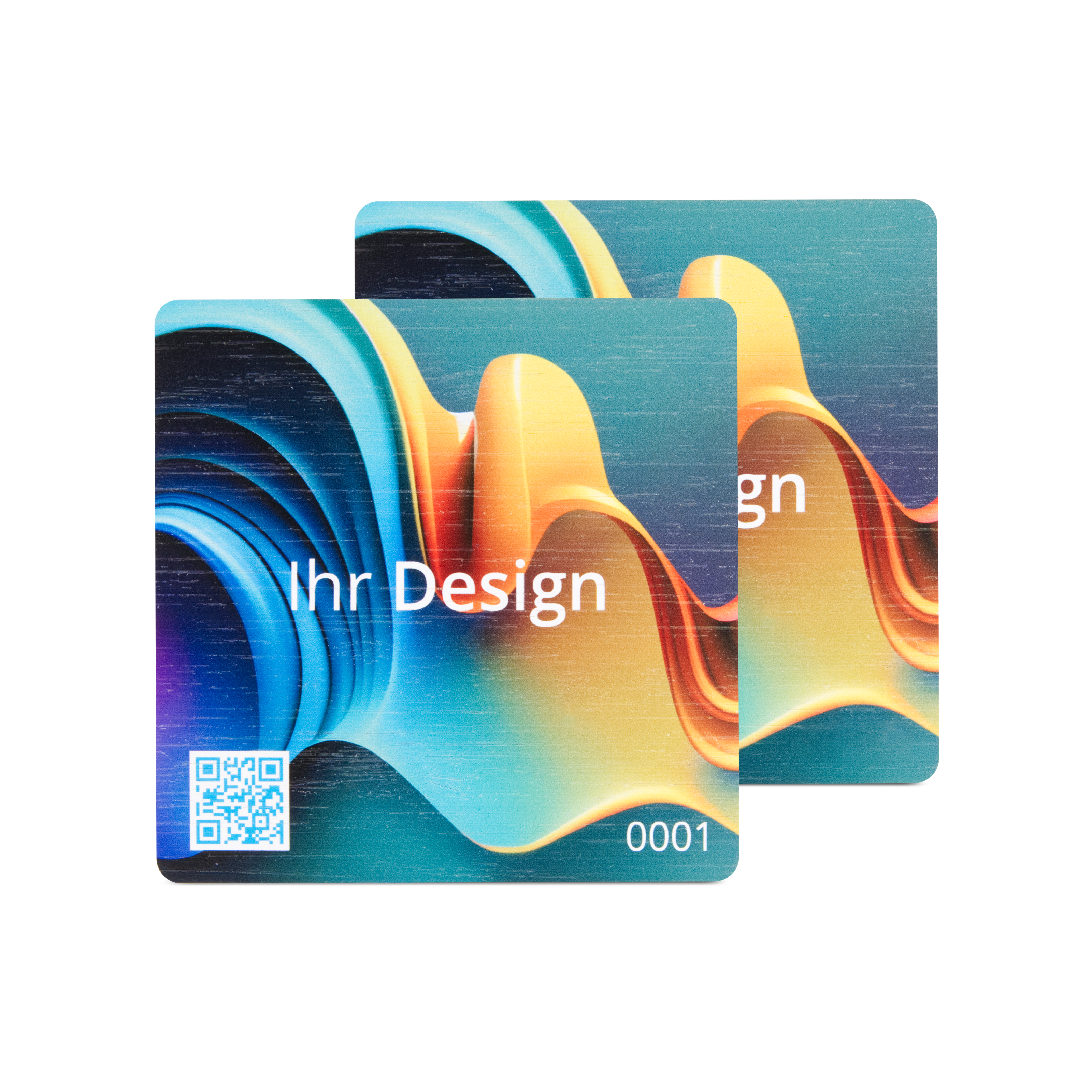 NFC Schild Bambus beidseitig bedruckt 93 x 93 mm - NTAG213 - 180 Byte - Holzoptik