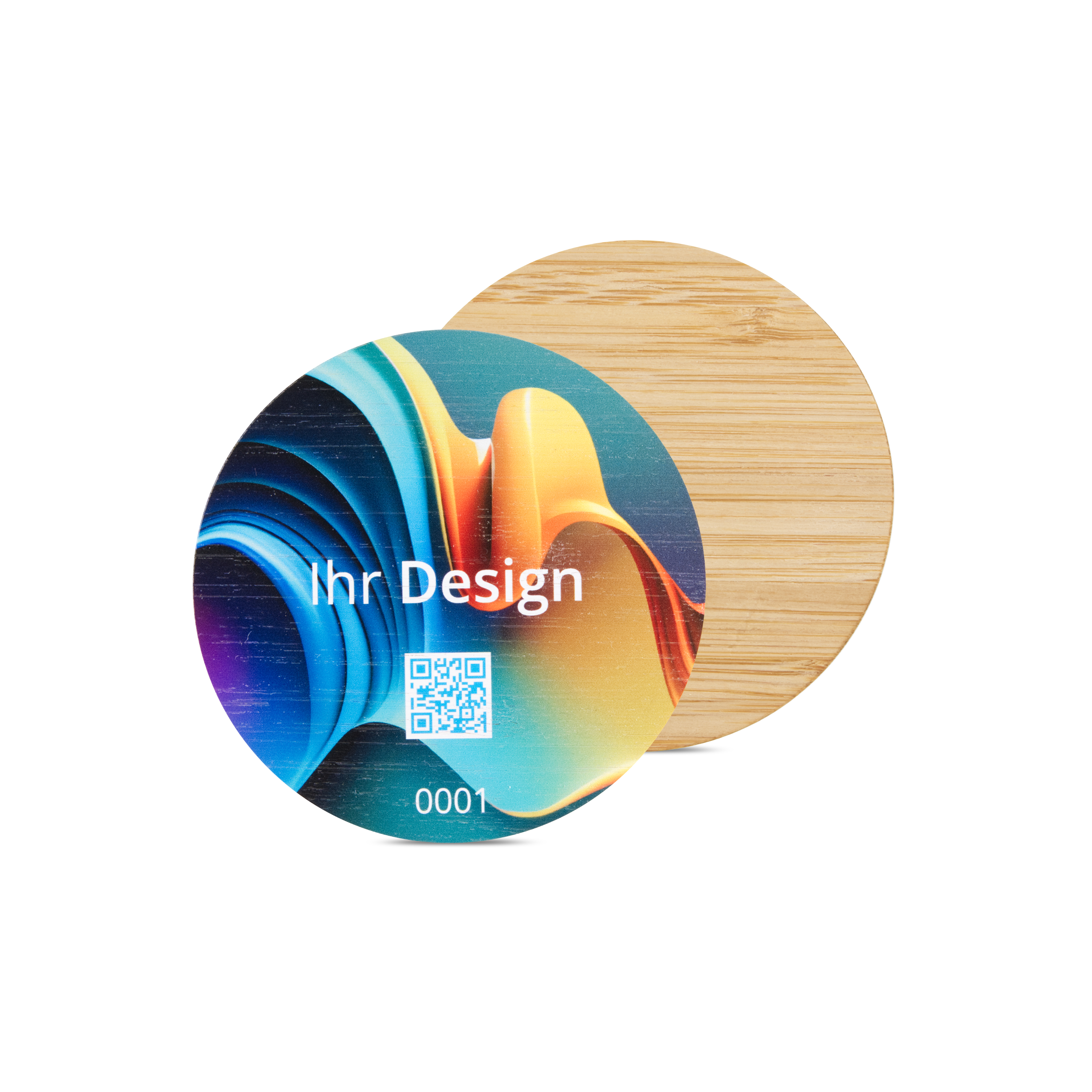 NFC Schild Bambus einseitig bedruckt 75 mm - NTAG213 - 180 Byte - Holzoptik