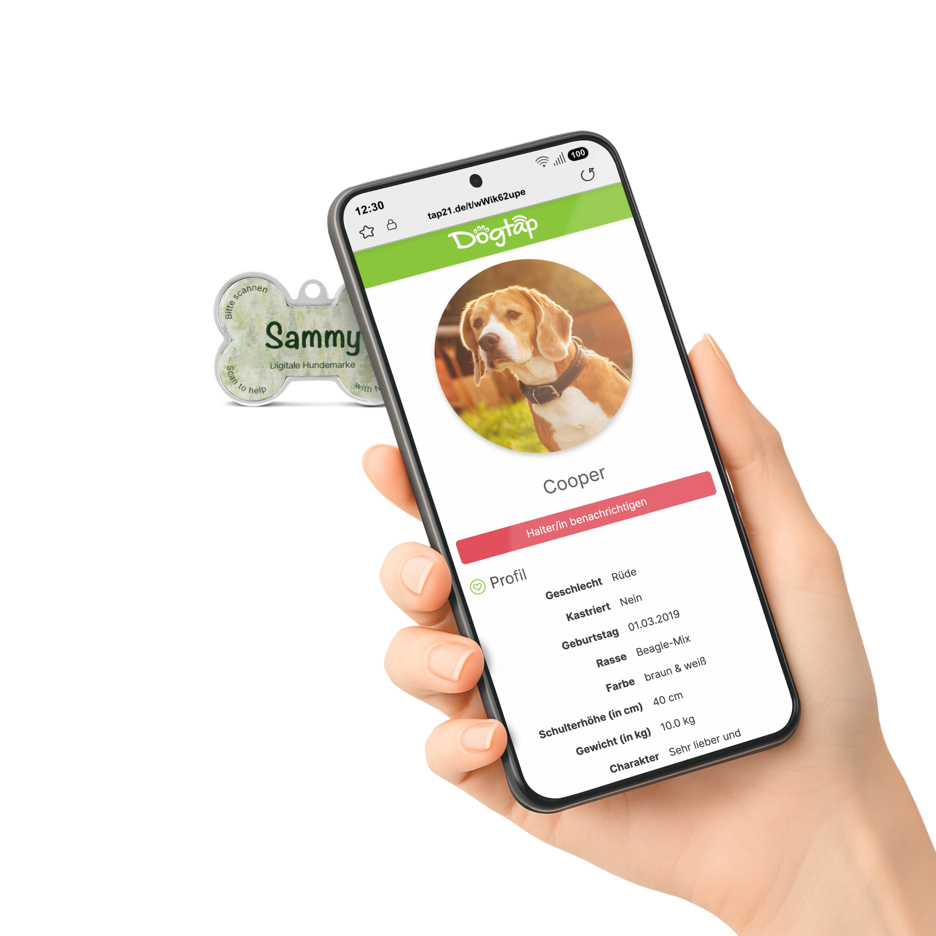 Mit der digitalen Hundemarke Dogtap bietest du deinem vierbeinigen Freund zusätzliche Sicherheit, sodass er im Notfall bestmöglich versorgt und schnellstmöglich mit dir vereint werden kann. Mit nur einem Scan mit Hilfe des eigenen Smartphones liefert der Dogtap in einem übersichtlichen Hundeprofil umfassende Informationen zu dir und deinem Hund. So kannst du als Halter im Notfall jederzeit schnell und unkompliziert identifiziert und kontaktiert werden.