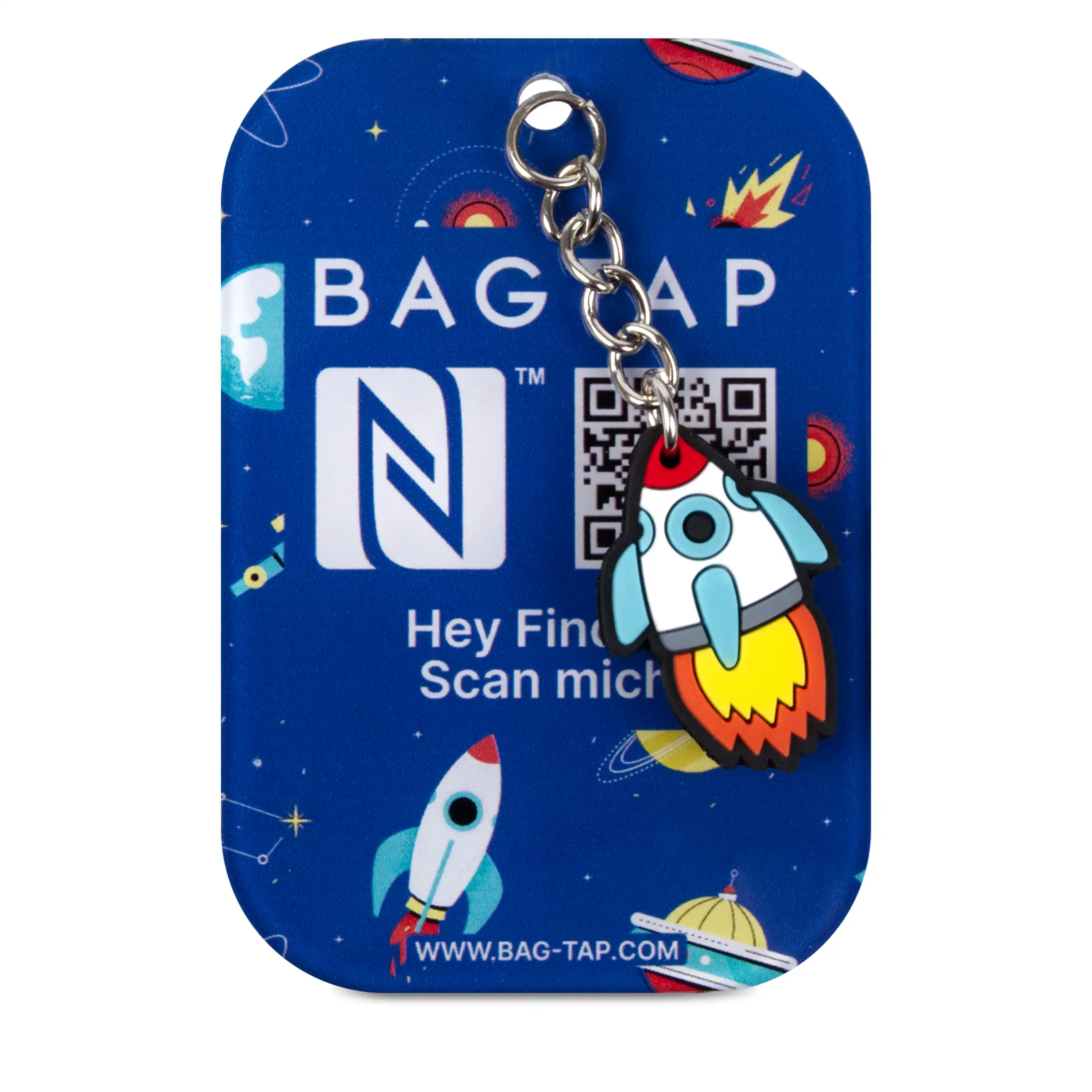 Whether it's a school bag, gym bag, suitcase, backpack, or sports bag, Bagtap Kids ensures that your child's most important belongings can always be easily identified. Thanks to child-friendly designs, the tag is not only a practical helper, but also a real eye-catcher that children love to carry with them. Our innovative tag is equipped with intelligent additional functions. Unlike conventional name tags, the data is not printed visibly, but stored digitally. This means that personal information remains protected and cannot fade or become illegible. Parents can conveniently enter and update the data online via our secure Tap21 platform. The stored information can be easily retrieved via NFC scan or QR code if necessary. With just one more click, the family can be notified so that lost items can quickly find their way back. Bagtap Kids combines safety and data protection with a cheerful design and is the ideal companion for school, leisure, and on the go.