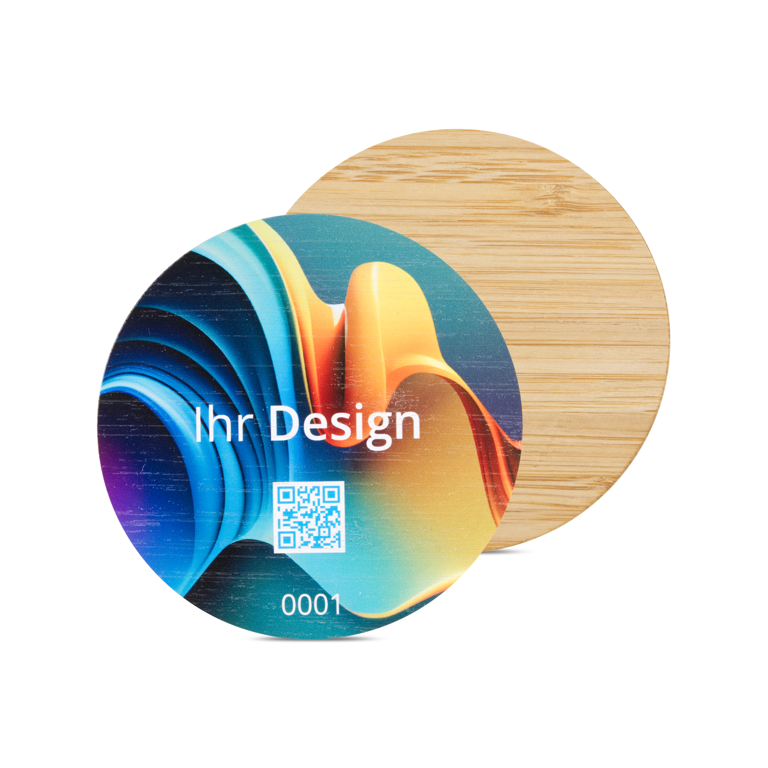 Thanks to its size and robust material, the NFC plate is suitable for a wide range of applications. From information signs and rating buttons to coasters, there are no limits to the ideas. With the NXP NTAG213 chip and 180 bytes of memory, it offers optimum functionality and sufficient memory for a URL that links to the desired destination. Made from the renewable raw material bamboo, it combines environmentally conscious design with modern technology.